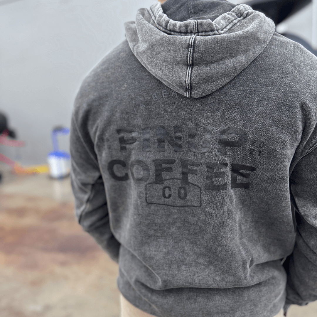 Introducing our new Dark & Dangerous Pinup Hoodies: your new uniform for chilly mornings, late-night roasting sessions, and everything in between. Choose from our mineral wash finish with a lived-in vibe or a sleek dark grey, each accented with custom black logos that give off that effortless ghost-print look.