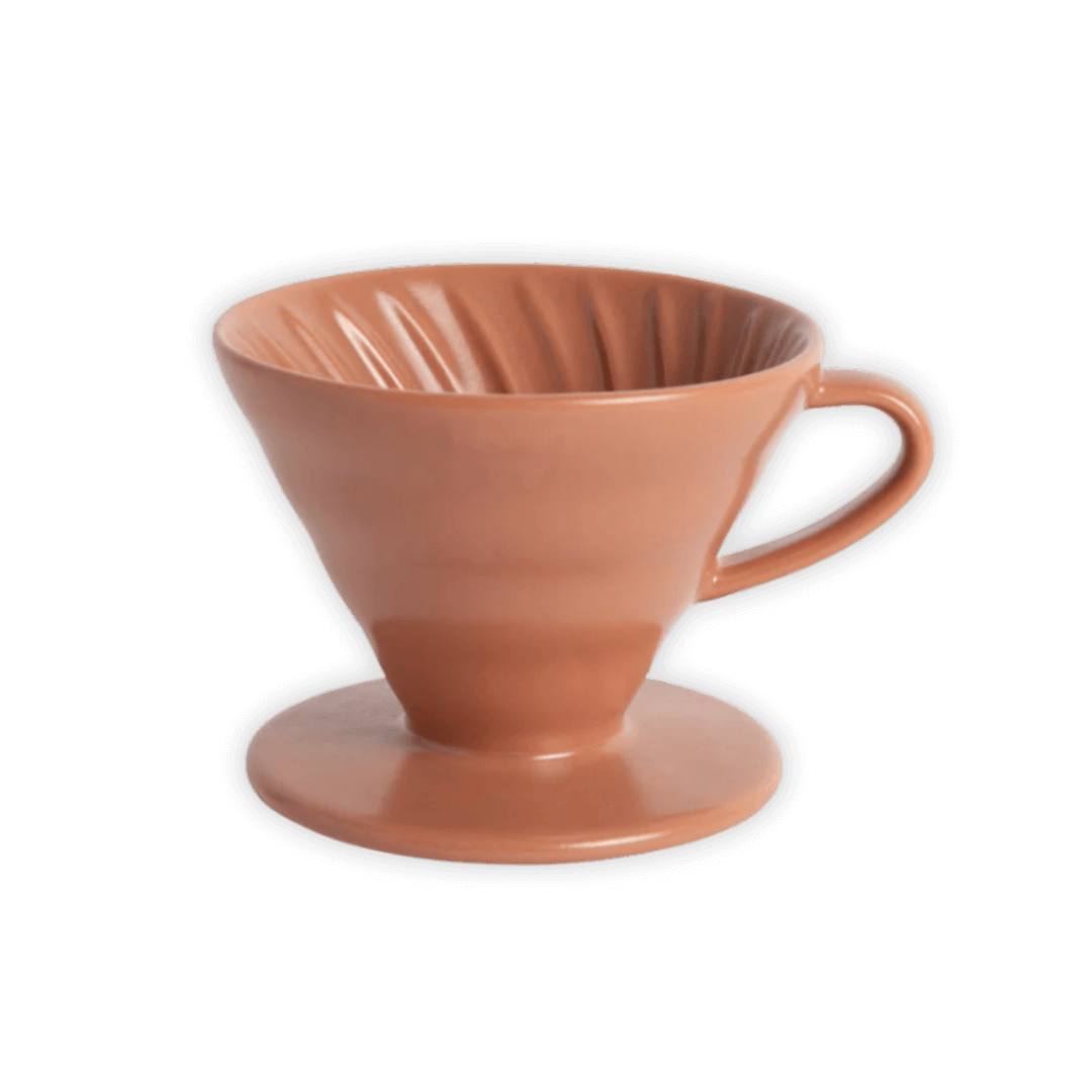 The Hario V60 ceramic coffee dripper is one of the most popular brewers in the coffee world. Brewing takes about three minutes, and its minimal design allows for easy storage and cleaning. It's handmade in Japan out of high-quality ceramic which holds heat well, and the 02 size makes 1-4 cups of coffee.